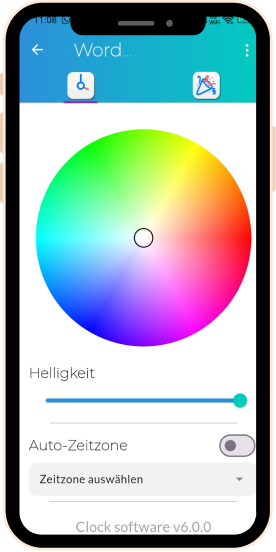 Wähle die Farbe deiner LED-Anzeige aus über 16 Millionen Farbtönen – einfach mit dem Farbrad auf die gewünschte Farbe stellen und die Zeit in deiner Lieblingsfarbe erstrahlen lassen.Choose the color of your LED display from over 16 million shades – simply set the color wheel to your desired color and let the time shine in your favorite hue.