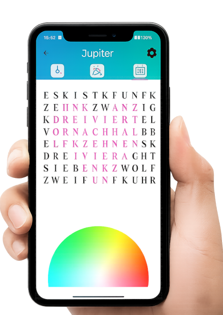 Synchronisiert die Zeitzone deiner WordClock automatisch für eine präzise Zeitangabe.Automatically synchronizes the time zone of your WordClock for precise time display.