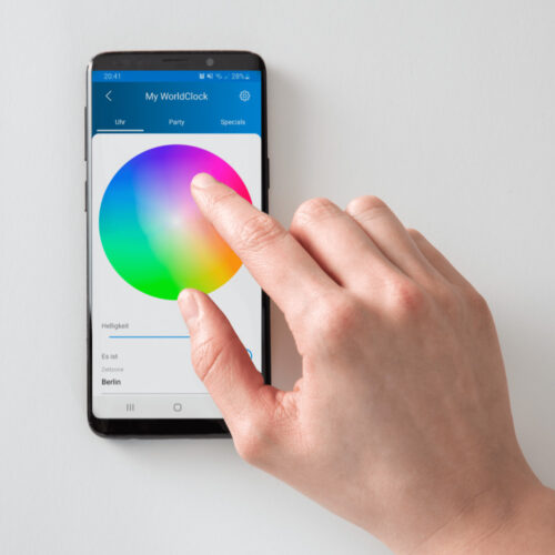 The time shines in your favourite colour! The colour of the LED lighting can be set as desired in the app using a colour palette. With a choice of over 16 million colours, the possibilities are endless. Changing word colours or colourful letters - variety is guaranteed.