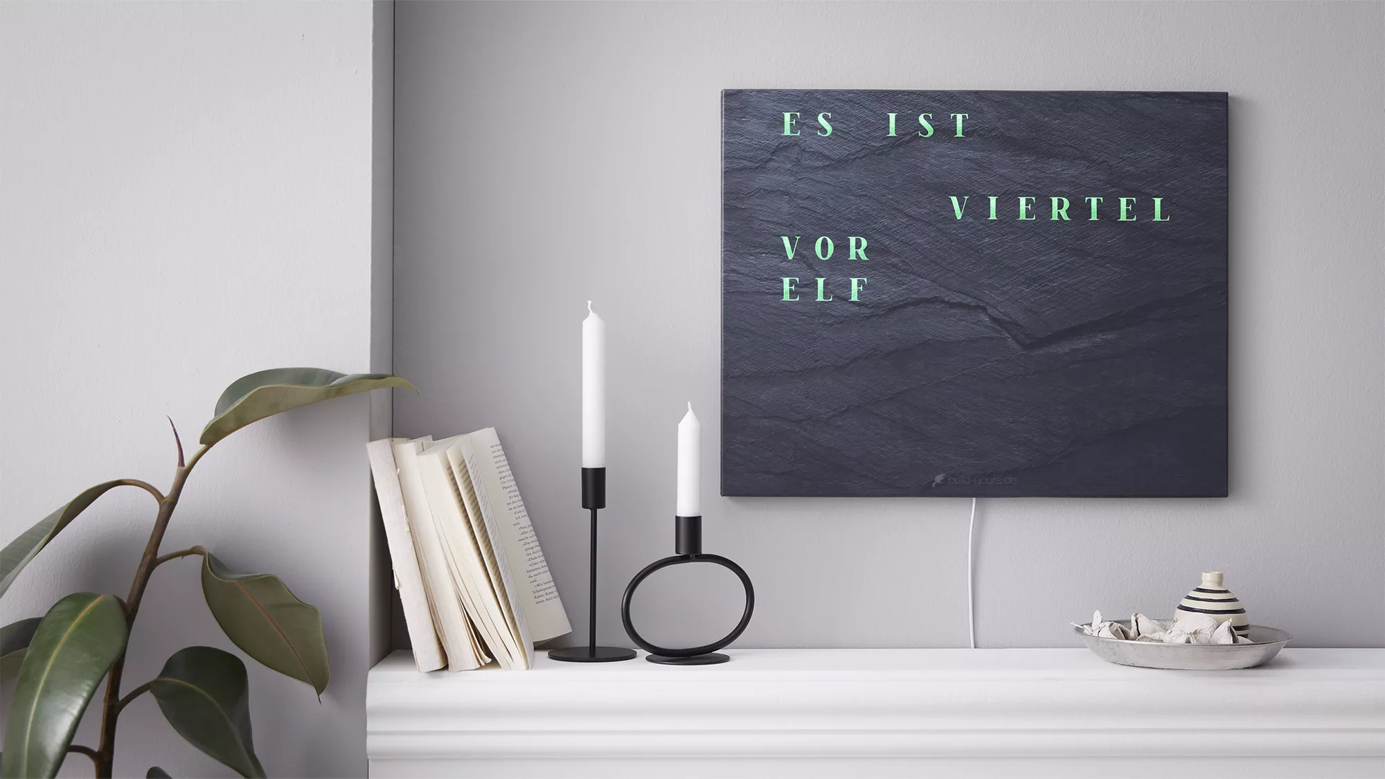 The word clocks are WLAN-enabled and can be conveniently controlled with the build-yours app - whether with a smartphone, tablet or PC - these LED clocks are a joy for technology enthusiasts.