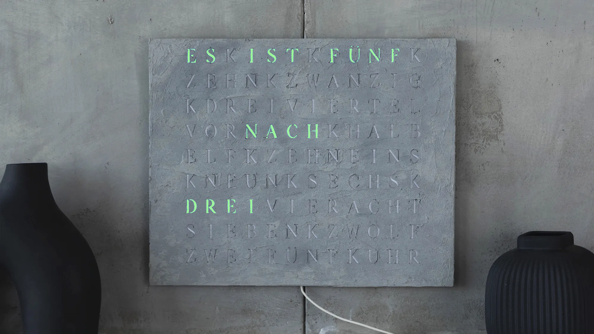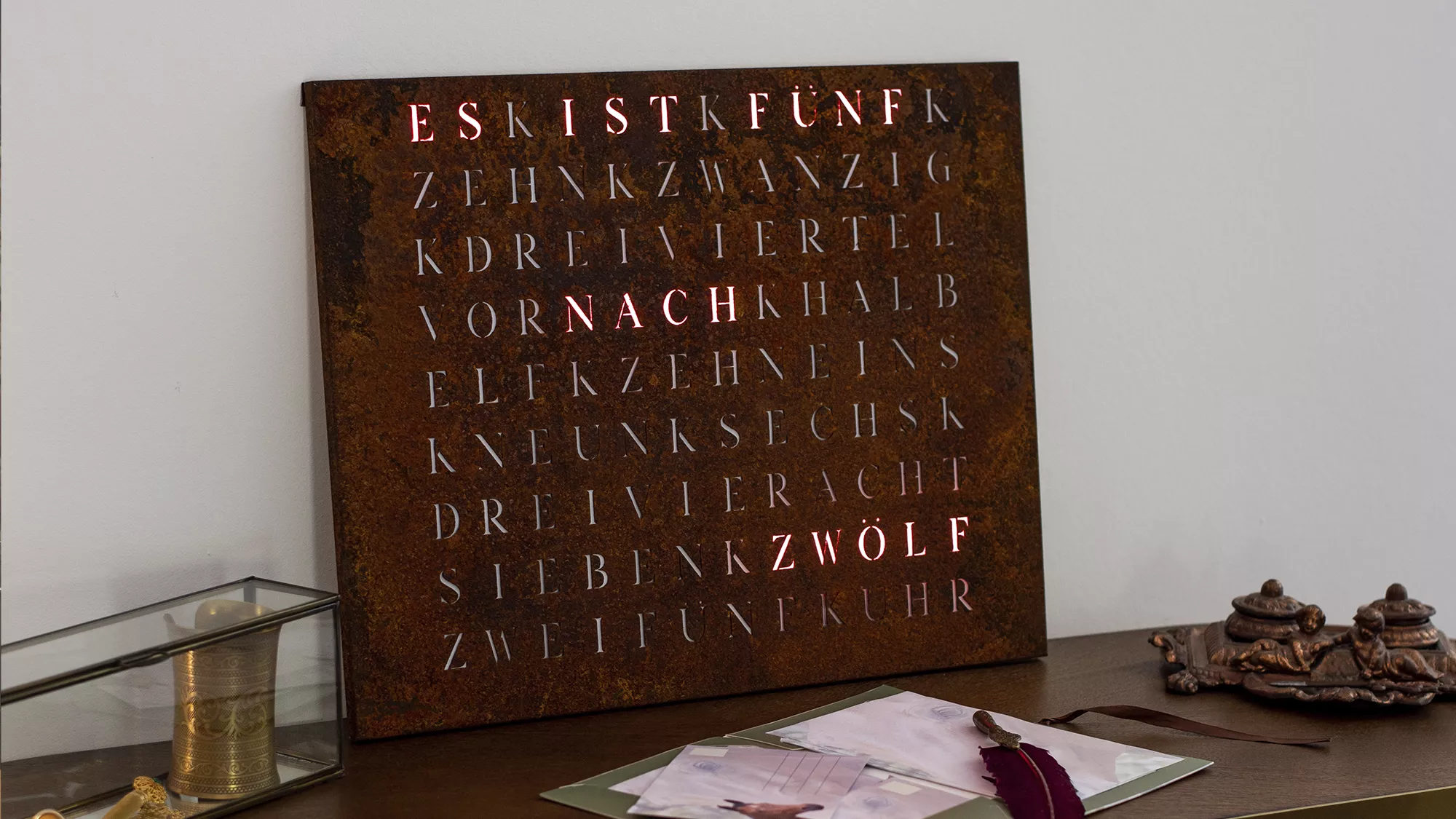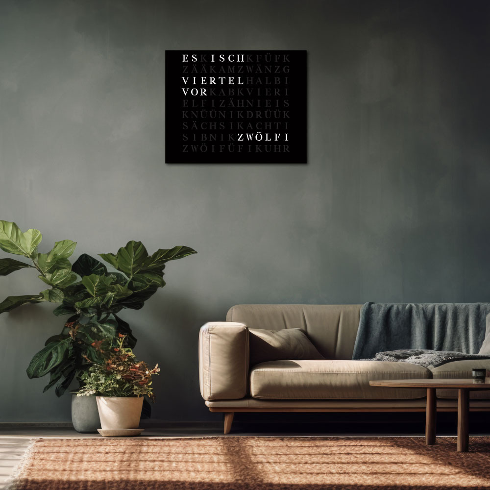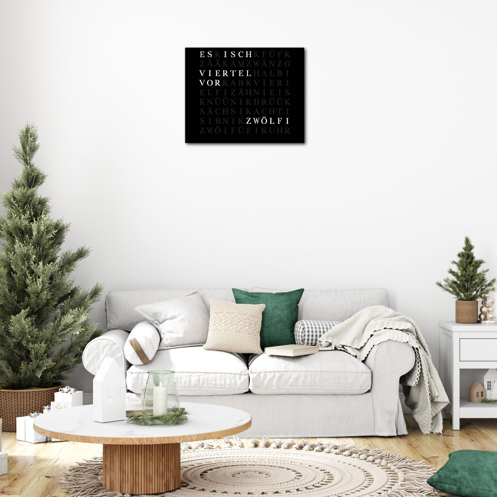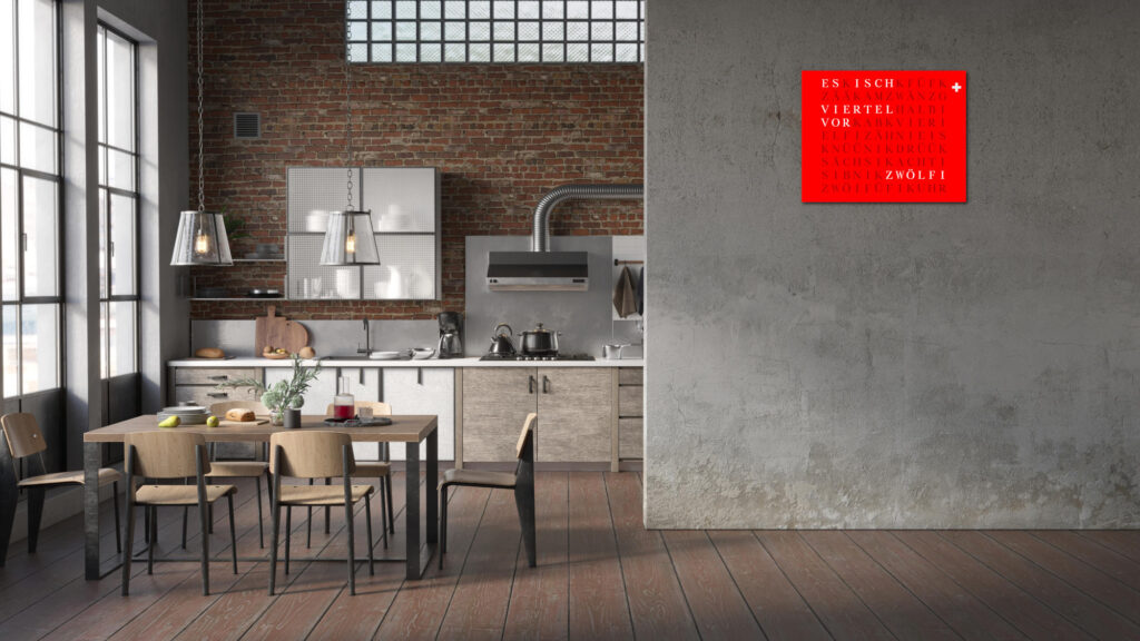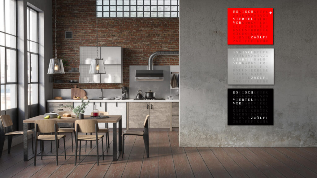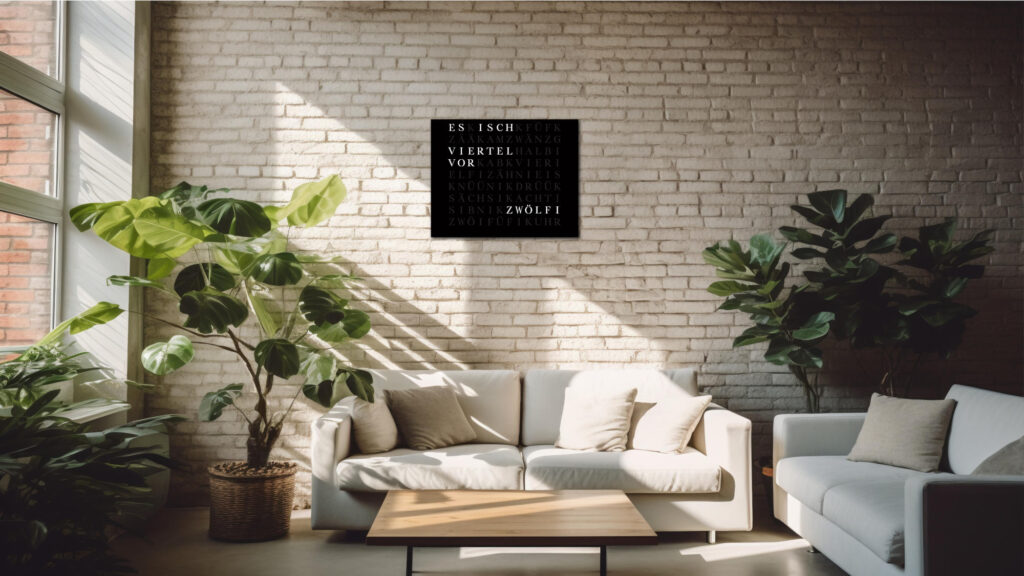 Time in its most beautiful form. The WordClock Jupiter combines clear geometry, precise material processing and harmonious lighting. As a rectangular wall clock (50 × 40 cm), it blends seamlessly into modern rooms and emphasises a conscious design claim. For a piece of technology that fulfils Swiss design standards