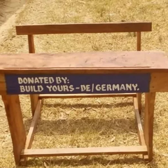 A school expansion in Assin-Akonfudi, initiated years ago by the government, could not be renovated for a long period due to financial shortages. The school remains in poor condition to this day. The most urgent need is for school desks, since many children have to bring chairs from home. However, not every family can afford a chair. To still provide the children with a place to learn and thus enable school attendance, the project initiated by Christa Amelung in summer 2019 collects donations for the equipment and maintenance of the school, under the motto: “Education needs space, children need places to learn.” Since then, thanks to the help of many committed supporters, some of the 300 required school desks have already been donated. We also responded to this call and donated 5 school desks to the students. The desks and tables are built by the village carpenter using locally available wood. This both supports local employment and keeps transport costs low. With this donation, we want to contribute to a future of equal opportunities, fight poverty, and give children access to education.