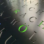 - Große, klare und gleichmäßig ausgeleuchtete römische Buchstaben