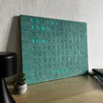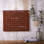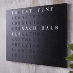 Hochwertige Fronten aus Edelstahl, Eisen, Messing oder PLA bringen Materialität und Handwerkskuns ins Wohnambiente. Jede Oberfläche wird präzise bearbeitet – gebürstet, pulverbeschichtet, oxidiert oder veredelt - für authentische Struktur und dezenten Glanz. Die Auswahl an Farben und Materialien macht jede WordClock zum passenden Objekt – ob für moderne, minimalistische oder industrial Interior‑Stile.
