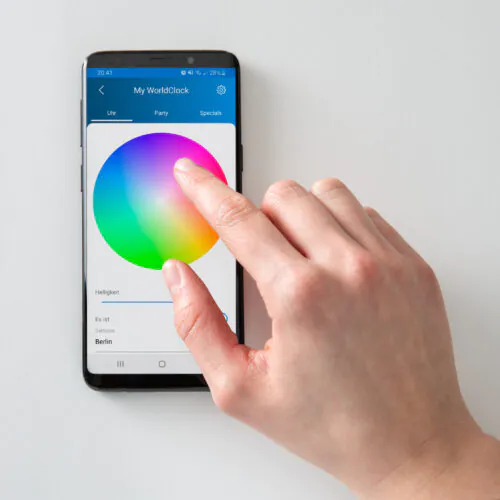 Die Uhrzeit leuchtet in Ihrer Lieblingsfarbe. Über 16 Millionen Farbnuancen stehen zur Auswahl – von zurückhaltendem Warmweiss bis zu intensiven Akzenten. Über die App lassen sich Lichtfarbe und Leuchtkraft dem gewünschten Ambiente jederzeit anpassen.