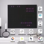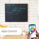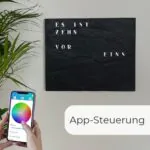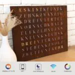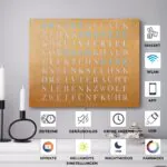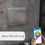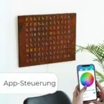 Einfach verbinden, smart steuern. Die WordClock Jupiter nutzt Bluetooth und WLAN für eine intuitive Verbindung mit Smartphone, Tablet oder Laptop. Über die App lassen sich Farbe, Helligkeit und Effekte anpassen individuell und präzise. Regelmässig Software- Updates halten das System technologisch auf dem neusten Stand