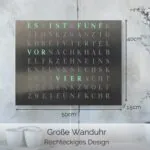 Zeit in ihrer schönsten Form. Die WordClock Jupiter kombiniert klare Geometrie, präzise Materialverarbeitung und eine harmonische Lichtführung. Als rechteckige Wanduhr (50 × 40 cm) fügt sie sich nahtlos in moderne Räume ein und unterstreicht einen bewussten Gestaltungsanspruch. Für ein Stück Technik, das Schweizer Designansprüchen gerecht wird