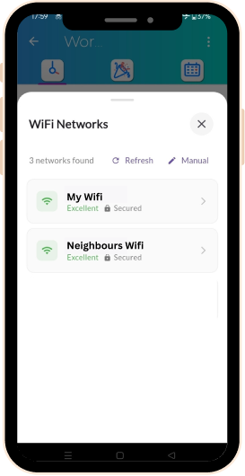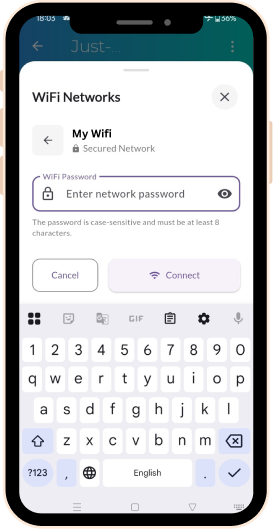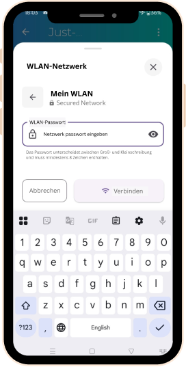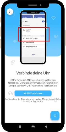 Ihre Uhr ist über Bluetooth verbunden – wählen Sie WLAN aus und geben Sie das Passwort ein.