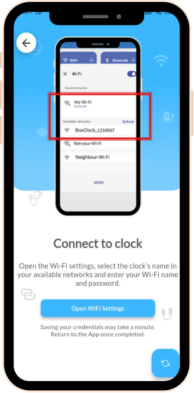 Your clock is Connected via Bluetooth- Select Wi-Fi and enter password.