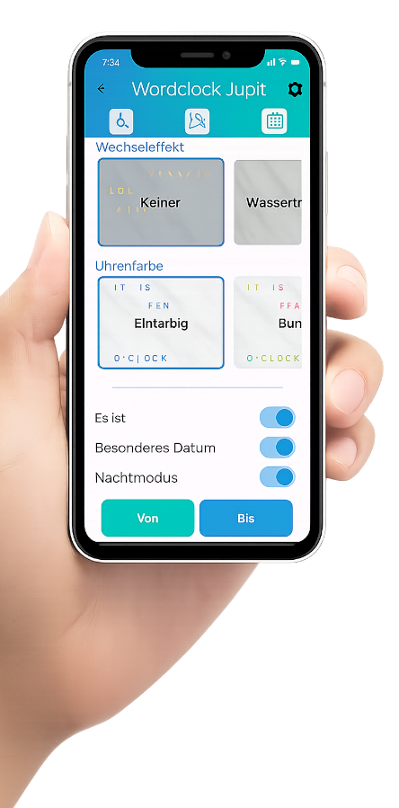 Regular updates bring improvements and new features. Compatible with the WordClock Jupiter and the BoxClock.